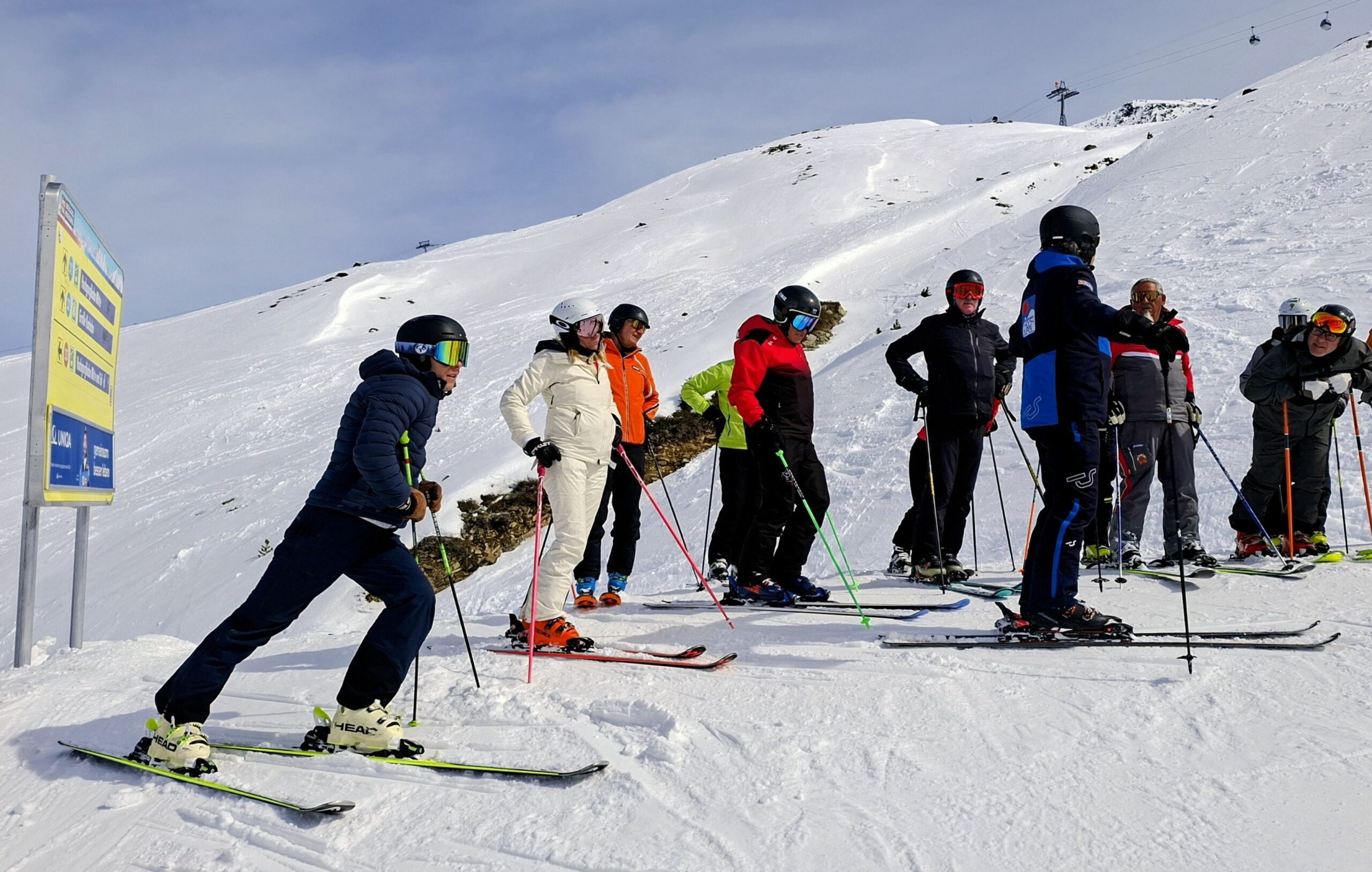 Attila Scheiber begrüßte alle Gäste und lud umgehend zu einer Stärkung mit Weißwurst und Brezn ein, verteilte die Tagestickets und gab einen kurzen Überblick über den Ablauf. Bevor es auf die Piste ging, begrüßte Präsident Roderich Urschler alle Anwesenden, freute sich über die rege Teilnahme und dankte dem Hausherrn für die Einladung und die Gastfreundschaft.