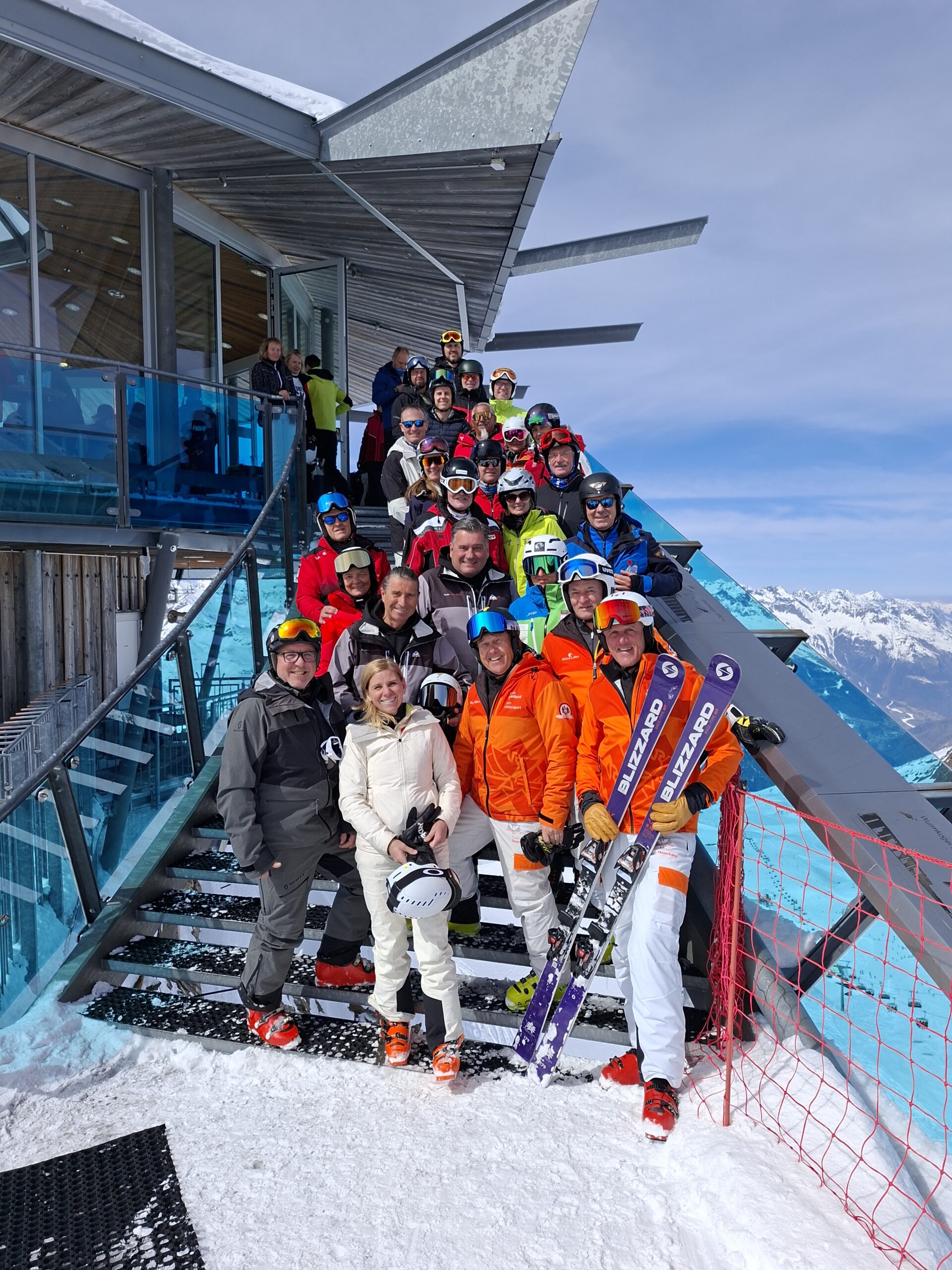 Gegen Mittag erfolgte eine Einkehr im Mountain Star, einer einzigartigen Panoramabar am höchsten Punkt im Skigebiet mit einem wunderbaren Rundumblick auf die Ötztaler Alpen bis zu den Dolomiten.